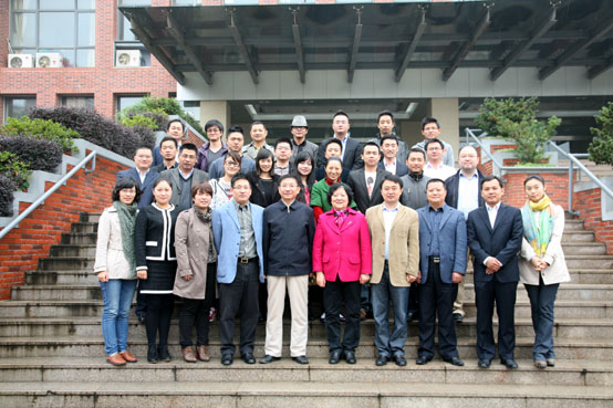座谈的间歇时间,校领导与各位校友在行政楼前合影留念。