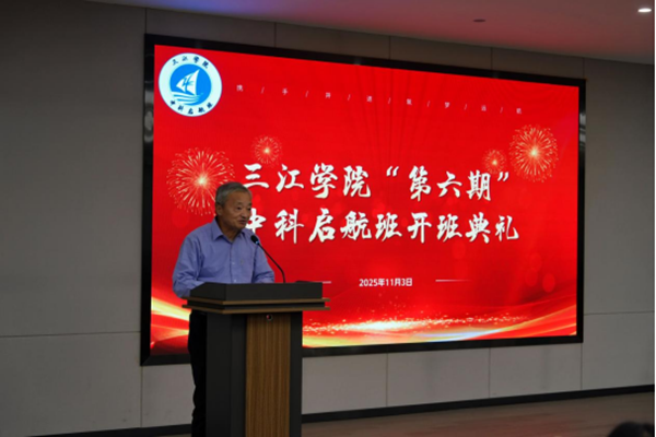 王连安在致辞中深刻阐释了启航班的育人初心:“我们首要为社会培养优秀人才,其次为行业企业输送骨干力量,最终为中科储备精英后备。” 他表示,与三江学院的校企合作,既是企业践行社会责任的生动实践,也为企业持续发展注入了源源不断的人才活力。面对大健康产业前所未有的发展浪潮,王连安寄语新学员,务必珍惜在校园与企业的双重学习机遇,在实践中锤炼过硬专业本领,未来无论立足何种岗位,都能成长为推动行业高质量发展的中坚力量。