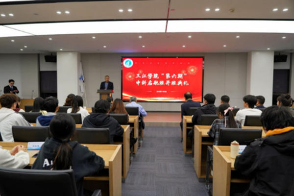 11月3日,三江学院中科启航班第六期开班仪式于中科大厦举行。中科集团董事长王连安,总裁冯鹏,常务副总裁韩丰成,副总裁彭雅娟,大众事业部副总经理蒋萍,团总支书记王烨欣;三江学院副校长汤文成,法商学院院长蒋建华,党总支书记刘万美,副院长顾艳、李益平、徐慧亮等领导出席典礼。历届中科班班主任与优秀校友代表也受邀到场,共同见证新一批学员的启航时刻。
