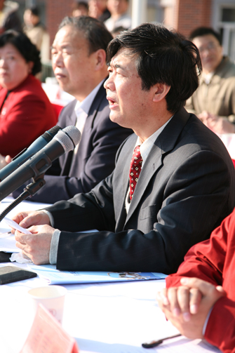 叶俊校长为运动会致辞,她说:“值此党的十七大刚刚胜利闭幕,全国上下深入学习贯彻十七大会议精神的时候,我们迎来了三江学院第十四届田径运动会,在此我谨代表学校党委、行政对本届运动会的召开表示热烈的祝贺和衷心的祝愿!学校作为培养社会主义事业接班人的摇篮,必须全面贯彻党的教育方针,培养德、智、体等全面发展的人才。而学校体育是全面发展教育的重要组成部分,发展体育运动,有利于增强师生体质,促进师生身心健康发展,也是我们每个人学习科学文化知识、进行社会实践和完成工作任务的有力保证。我们举办运动会的目的,一方面展示我校学生体质的新面貌,检阅我校体育运动的新水平,另一方面也是为了进一步推动和促进学校群众性体育活动的发展,丰富校园体育文化生活,激励师生积极锻炼身体,把学校体育工作推上一个新的台阶。”她还特别提醒大家,要注意安全,气温下降,注意防寒保暖,充分做好赛前准备工作。最后,叶俊副校长说:“我相信,在大会组委会的领导下,在全校师生的共同努力下,我校第十四届田径运动会一定能开得安全、有序、健康、精彩!最后,预祝全体运动员取得优异的成绩!预祝本届运动会取得圆满成功!”