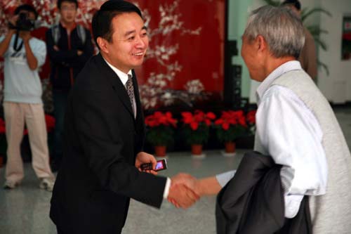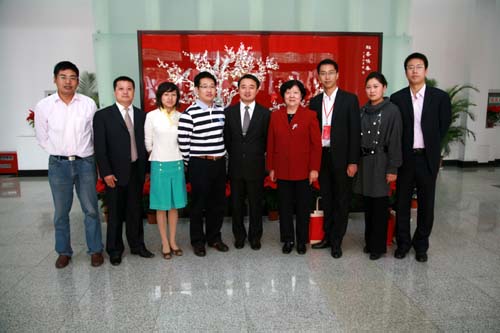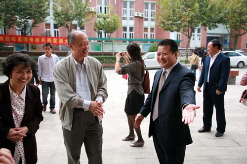 校办主任周更生、宣传部长王勇热情迎接参加典礼的嘉宾