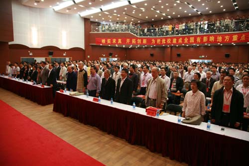 继17日晚上19:30在南京翠屏山宾馆召开了“三江学院校友总会成立会议”之后,18日上午10点,三江学院在三江会堂召开了建校十五周年庆祝大会。南京市政协副主席、雨花台区区委书记王建华,三江学院理事长、院长、党委书记陈万年,理事会理事、常务副院长骆志斌,副院长叶俊、王芝庆、王志强、董新华出席了会议,会议由副院长叶俊主持。叶俊副院长首先代表三江学院的全体师生向莅临大会的各级领导、各位嘉宾、各位校友表示了热烈的欢迎和衷心的感谢,并向大家介绍了出席庆祝大会的领导和嘉宾。出席三江学院建校15周年庆祝大会的领导和嘉宾既有来自南京大学、东南大学、南京师范大学、南京财经大学等兄弟院校的领导和代表,又有来自合作单位的领导、校友代表和社会各界的朋友。
