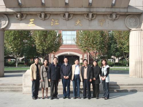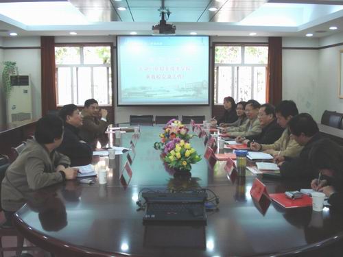 太湖创意职业技术学院来访我校  (双方举行会谈)  (陈万年校长与来访客人在学校牌楼合影) 11月3日上午,无锡市原副市长、太湖创意职业技术学院执行院长王竹平、副院长张遐道、院办主任张国良、学工处处长张国华、教务处处长夏明汉、招生处处长朱静萍、团委书记刘萍等一行7人来我校参观访问,三江学院副校长陈云棠,副校长、党委副书记董新华,学工部副部长、招生就业指导中心主任仇存进,后勤集团宿舍管理部部长吴杰波等在行政楼101会议室接待了来访客人一行。 陈云棠副校长代表三江学院对太湖创意职业技术学院的来访表示热烈地欢迎,并向客人们介绍了我校的发展历史和学校现状。来访客人观看了三江学院专题片。副校长、党委副书记董新华介绍了我校大学工管理模式、学生工作例会制度以及双师型辅导员队伍建设情况。仇存进主任介绍了招生就业工作,吴杰波部长介绍了宿舍管理工作。 座谈后,来访客人参观了第一教学楼、体育馆、学生食堂、学生宿舍等教学生活基础设施。随后,客人们在陈万年校长的陪同下来到牌楼前合影留念。 下午,太湖创意职业技术学院来访组与我校教务处就教学管理工作进行了对口交流。 王竹平院长代表太湖创意职业技术学院对三江学院的热情接待表示感谢,他说,回去后要将这次学习的内容好好的总结和消化,要重点学习三江学院的办学经验和教学管理、学生管理经验。 (通讯员 李云涛)